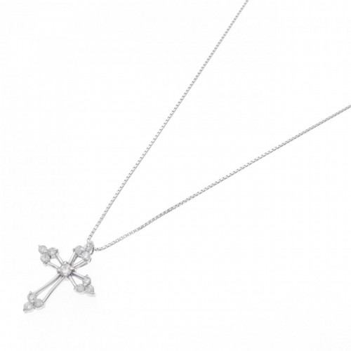 Au750 White Gold Cross Diamond Necklace Silver 18K White Gold