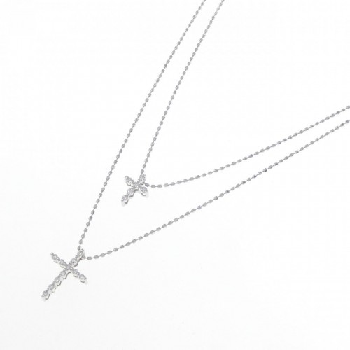 Indulge in timeless elegance with this 18K white gold cross necklace. Delicately adorned with shimmering diamonds, it adds a touch of understated luxury to your everyday style. A subtle yet sophisticated statement piece, perfect for layering or wearing alone, reflecting your refined taste and unwavering faith. A treasured addition to any discerning woman’s jewelry collection.