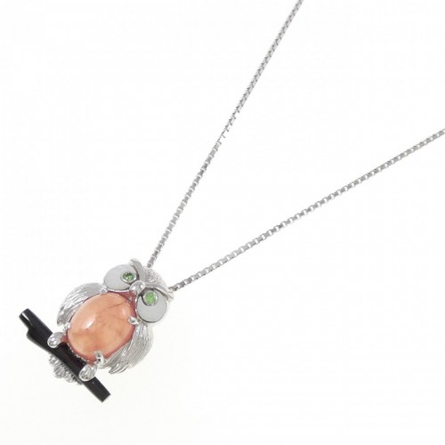 Item name : Au750 White Gold Owl Multi-Gemstone Necklace