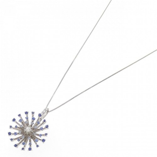 Au750 White Gold PT850 Platinum Sapphire Necklace Silver 18K White Gold