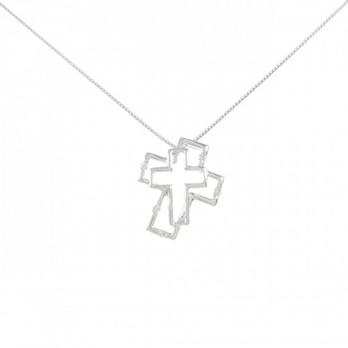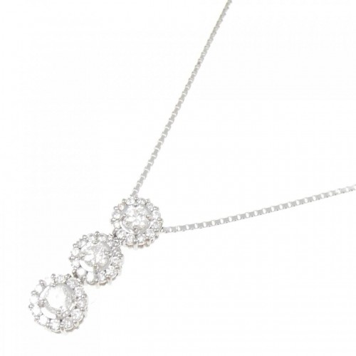 Au750 White Gold Three Stone Diamond Necklace Silver 18K White Gold