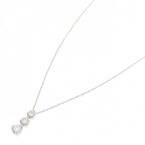 Au750 White Gold Three Stone Diamond Necklace Silver 18K White Gold