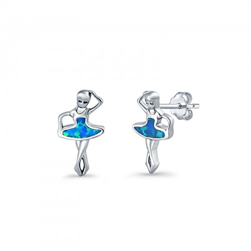 Ballet Dancer Stud Earrings Lab Created Blue Opal 925 Sterling Silver (11mm)
