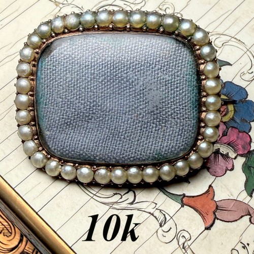 Beautiful Antique Victorian Seed Pearl Mourning or Memento Pin, Brooch in 9k Gold