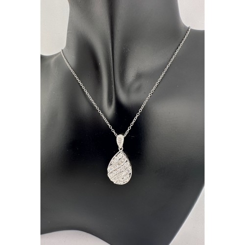 1 Carat Diamond Necklace. Numerous natural diamonds, round and baguette settings. Pear Cut . Lovely design. Shines Beautifully.