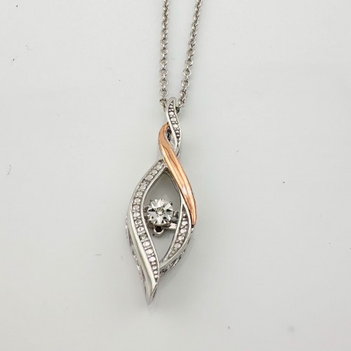 Beautiful Twisted 10kt Rose Gold & Sterling Silver Diamond Necklace