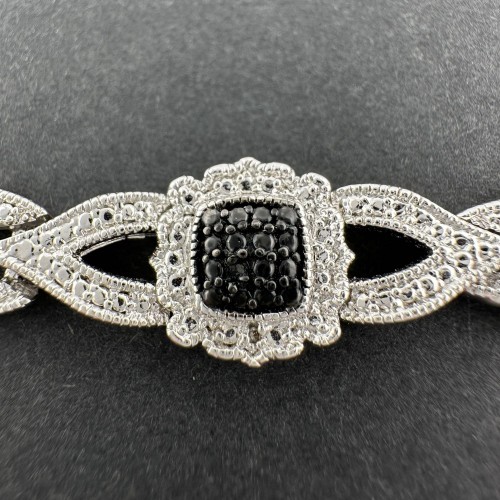 Genuine elegant black and white diamond bracelet . Square cushioned design sophisticated looking designer bracelet. Lovely alone or paired with some of the coordinating pieces we have available that match this design.