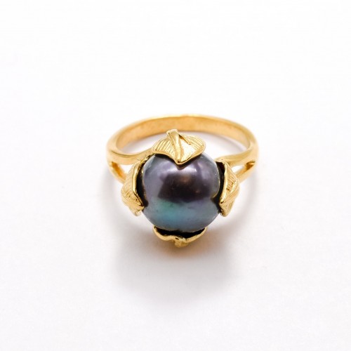 Black Pearl Gold Ring set with Natural Black Pearl in a stunning natural black color, at size 12mm (AAA Grade) from Japan.