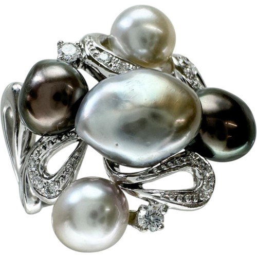 Item name : Black Pearl Non-nucleated Pearl Diamond Au750 White Gold Ring