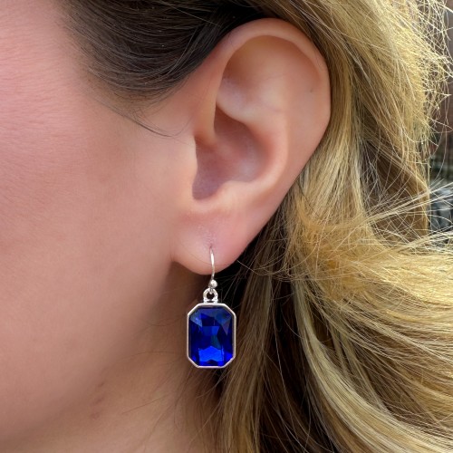 Blue and Silver Crystal Rectangle Earrings