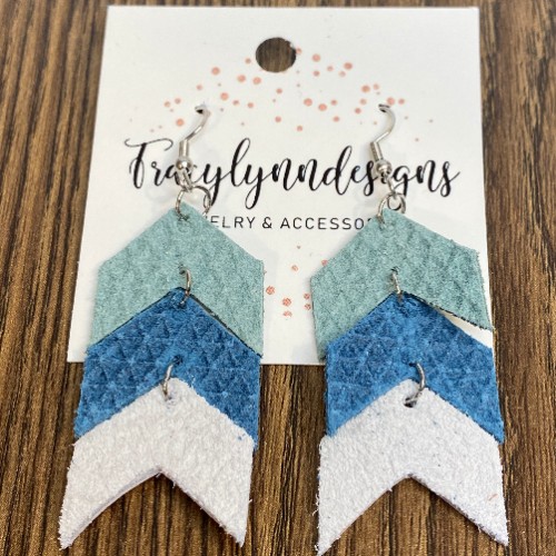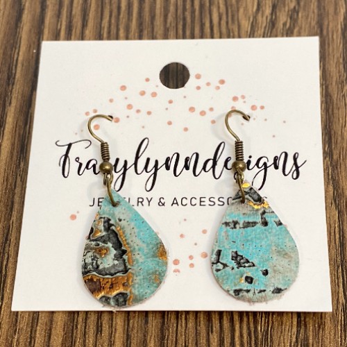 Blue Floral Leather Dangle Earrings