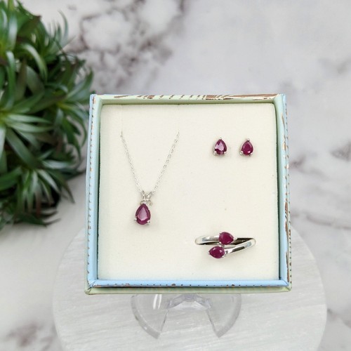 Blue Kyanite Faceted Jewelry 3 pc Box Set Sterling Silver Earrings, Pendant, Adjustable Ring #LV3232