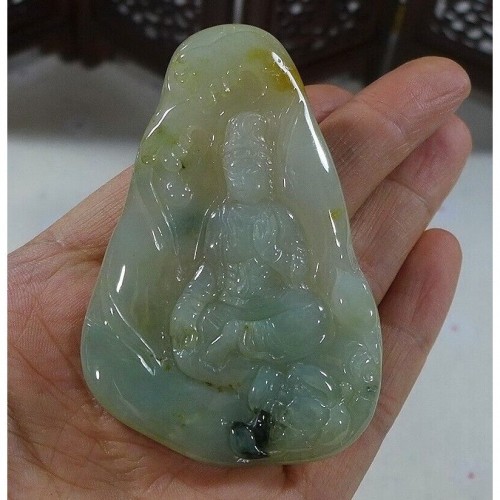 Blue Myanmar Jadeite Fox Pendant Necklace