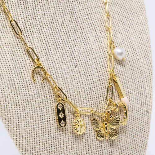 We’ve done the layering and stacking for you! This beauty features six strands of diamond-cut cable chain (four gold-plated strands and two steel strands), and will layer with other pieces so beautifully!