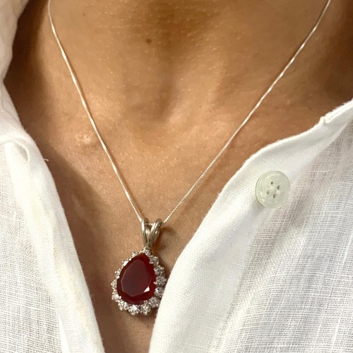Carnelian Pendant – Large Red Necklace – Princess Teardrop Necklace
