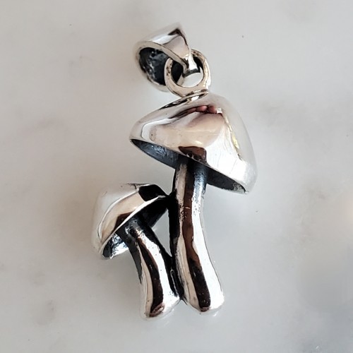 3D double sided pendant, perfect gift for a foraging afficianado. Thoughtfully handcrafted in Thailand of solid .925 sterling silver with fine sculptural details.
