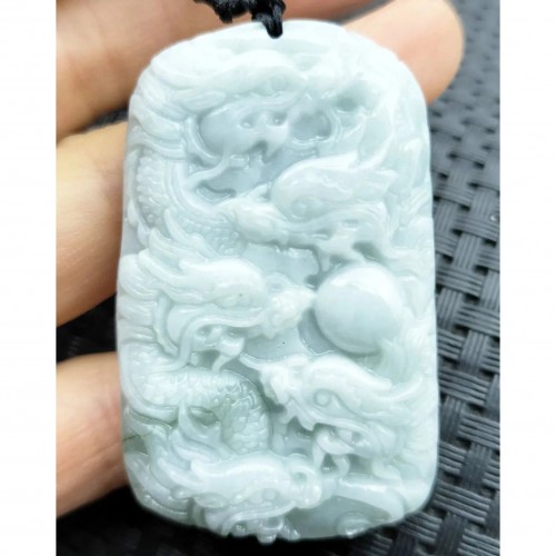 - Certified Green Lavender Natural Type A Jadeite Carved Dragon Bead Pendant