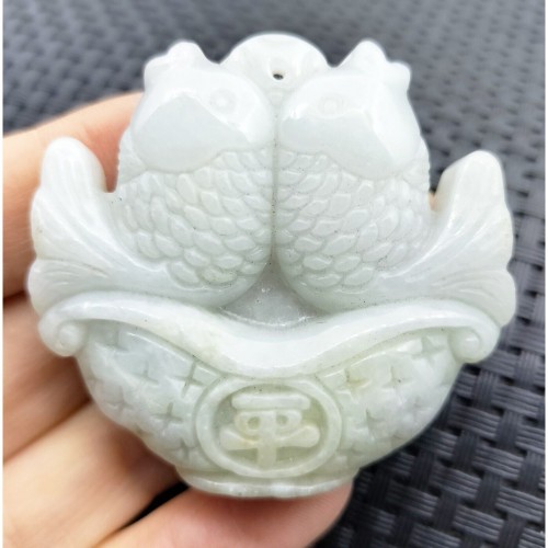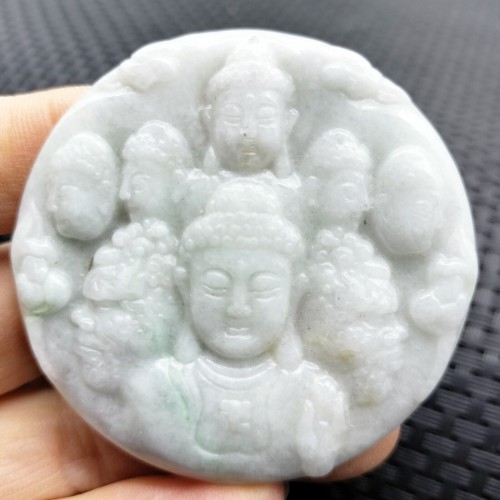 Certified Green Natural A Jadeite Carved Guanyin Kwan Yin God Dragon Pendant