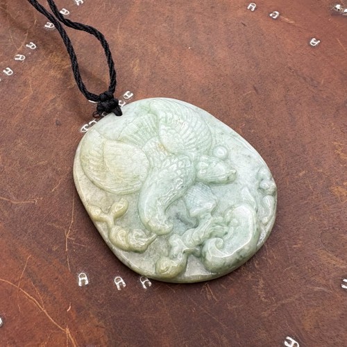 Certified Green Natural A Jadeite Carved Guanyin Kwan Yin God Dragon Pendant