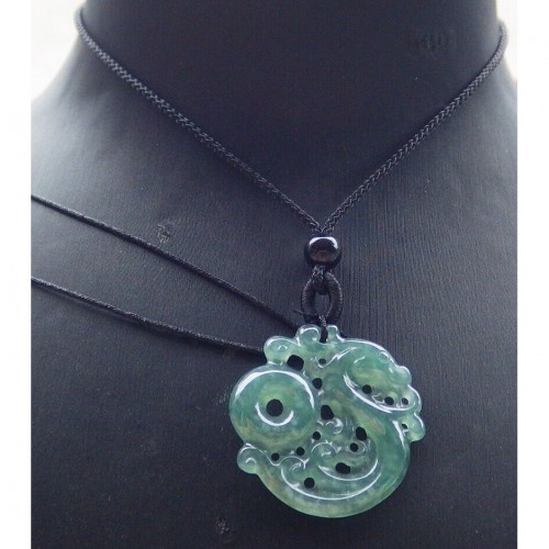 Certified Icy Green Natural A Jade Jadeite Pendant Dragon Circle Necklace
