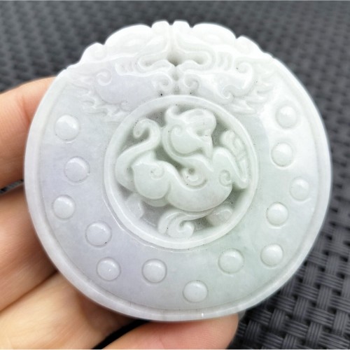- Certified Lavender Green Natural Type A Jade Jadeite Carved Dragon Ruyi Pendant