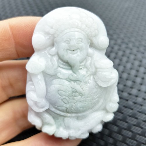 Certified Lavender Natural Type A Jadeite Carved God Of Wealth Ruyi Pendant