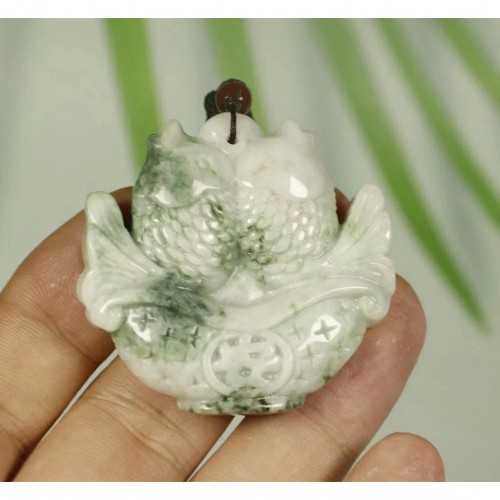 - Certified Light Green 100% Natural A Jadeite Jade Pendant Blessing Fish