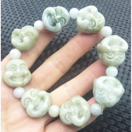 - Certified Light Green Natural A Jadeite Carved Buddha Bead Stretchy Bracelet