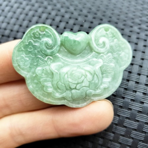- Certified Light Green Natural Type A Jade Jadeite Carved Flower Lock Pendant