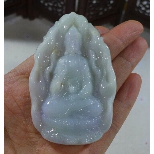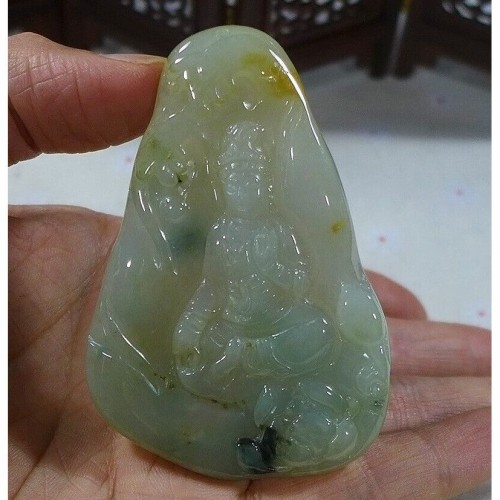 Certified Natural Type A Icy Yellow Jadeite Jade Lotus Kwan-Yin Pendant