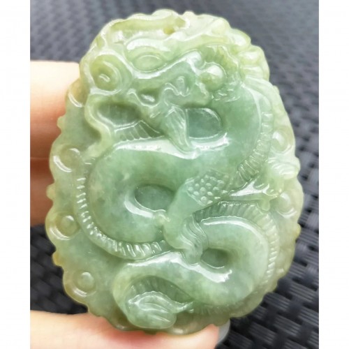 Certified Oily Green Natural Type A Jade Jadeite Carved Big Dragon Pendant Necklace