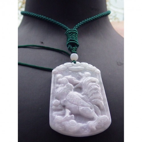 Certified Purple Burma Natural A Jade Jadeite Pendant Rooster Yuan Bao Necklace