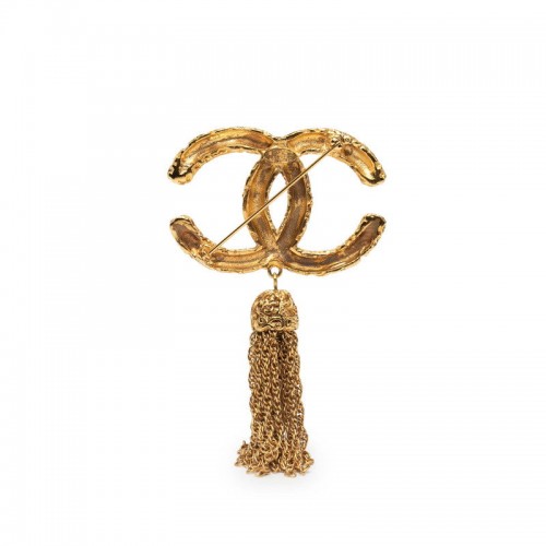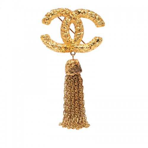 Chanel Coco Mark Lava Fringe Brooch Gold Gold-plated metal