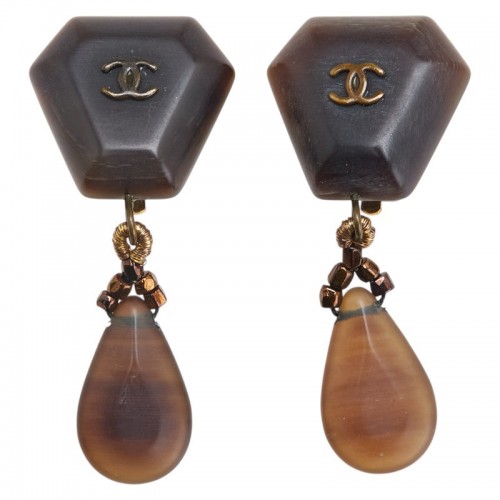 Item name : Chanel Coco Mark Wood Motif Earrings