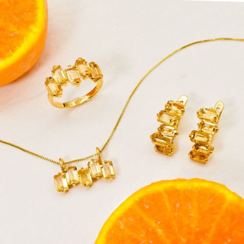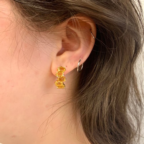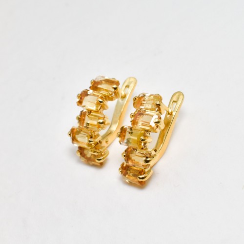Citrine Baguette Earrings – Natural Citrine Earrings, Gold Citrine Earrings
