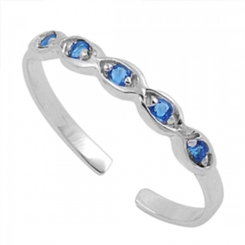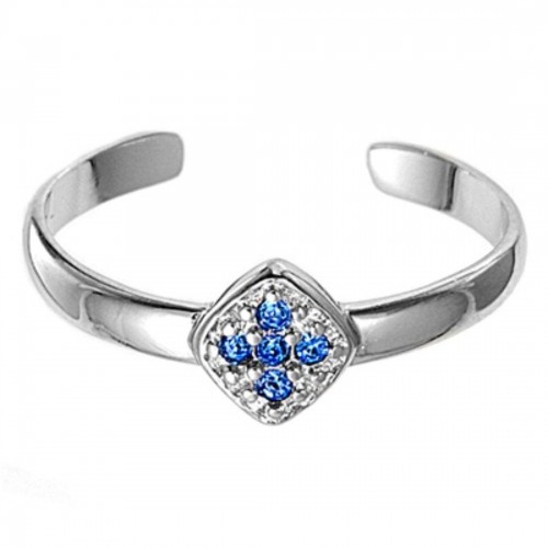 Silver Toe Ring Star Simulated Blue Sapphire CZ Adjustable Band 925 Sterling Silver (8mm)