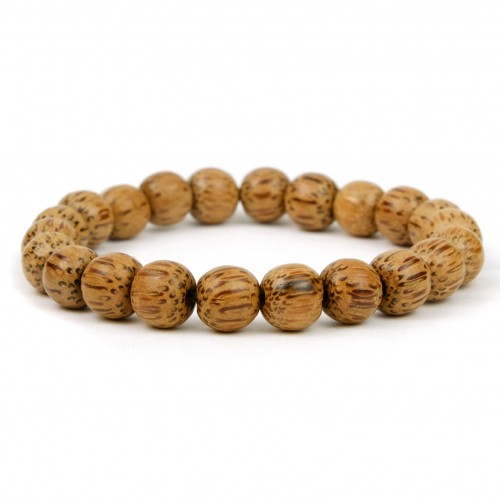 Coconut Wood 10mm Rounded Barrels Stretch Bracelet