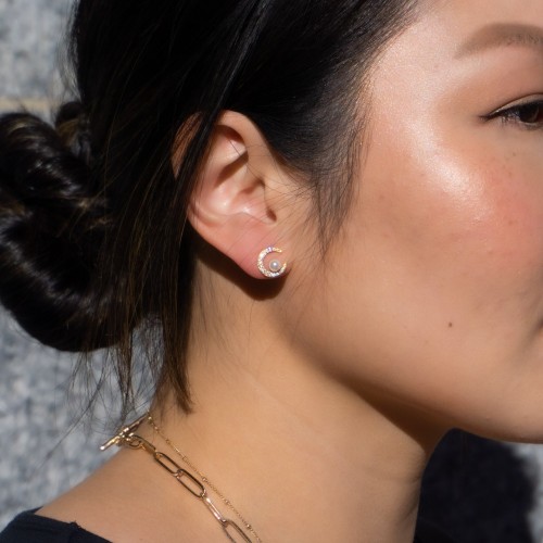 The delicately balanced freshwater pearl and hint of CZ stardust give these earrings an otherworldly feel.