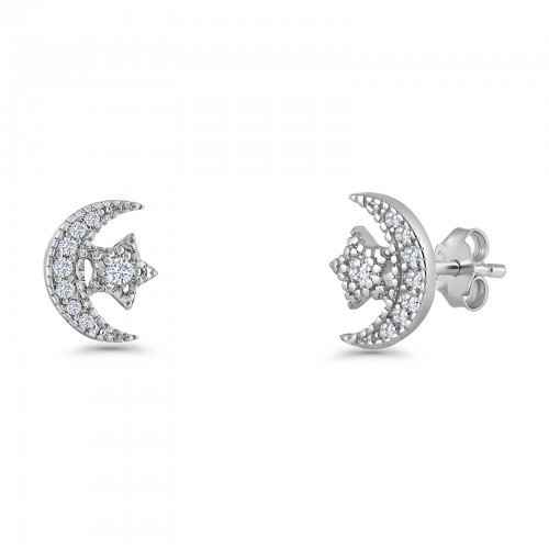 Crescent Moon & Star Stud Earrings Cubic Zirconia 925 Sterling Silver Wholesale