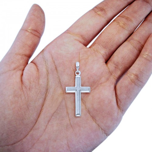 Cross Religious Charm Pendant 0.7 grams 20X23mm 14K White Real Gold