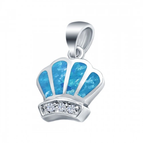 Crown Charm Pendant Lab Created Blue Opal & Simulated Cubic Zirconia 925 Sterling Silver