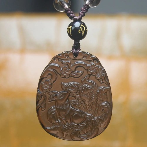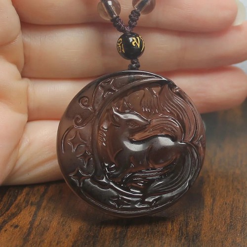 Crystal Gemstone Natural Ice Obsidian Nine Tail Fox Necklace Pendant with Chain