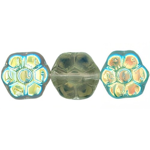 Czech Glass Triangular Table Cut Window Beads 8mm Teal/Bronze (1 Strand)