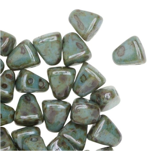 Czech Glass Matubo, Triangular 2-Hole Nib-Bit Beads 5.5x6mm, Luster – Opaque Green (2.5″ Tube)