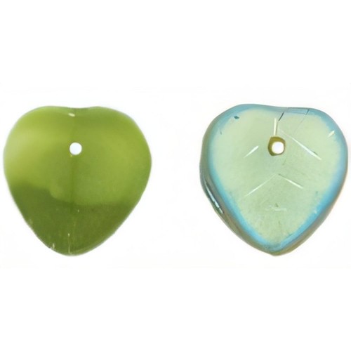 Czech Heart Leaves 10 x 10mm Blue Iris – Opaque Olivine (50pcs)