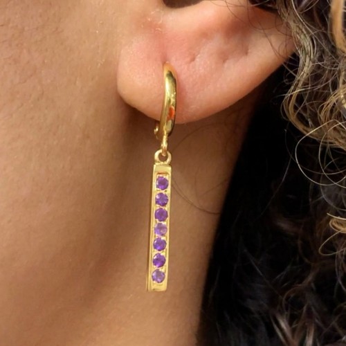 Dangling Amethyst Earrings set with Natural Amethysts in a stunning purple color, at 3mm each (1 Ct a pair) from Brazil.