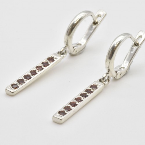Dangling Garnet Earrings set with Natural Garnets in a diamond cut & a deep red color, at size 3mm each (1 Ct a pair) from Mozambique.