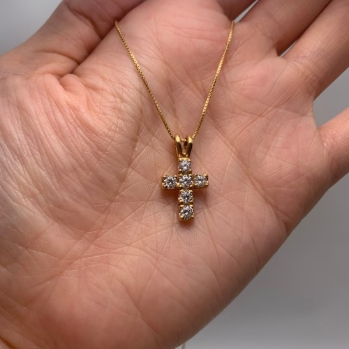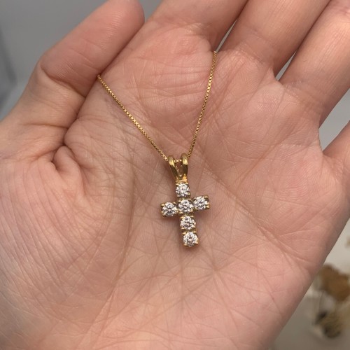 Diamond Cross Pendant set with Created CZ Diamonds in a flawless clarity & brilliant sparkle, at 3mm diameter each (1 Ct all).
