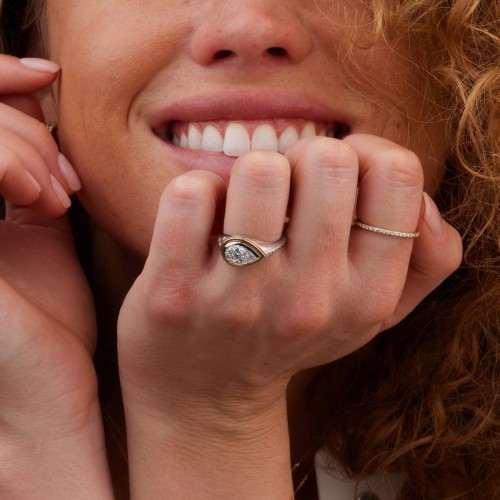 Brilliant-cut white diamonds are set in organic, yet refined forms, capturing a balance of raw beauty and timeless elegance.