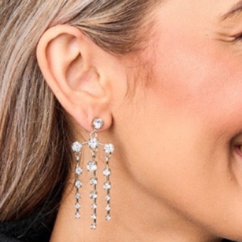 Add some pizzazz to any outfit with these statement earrings! The Dolly Earrings feature 3 columns of diamonds, getting smaller as they go. Dainty yet bold!